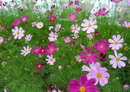 Это растение из семейства Астровые (Сложноцветные) называют также Космос или красотка. Неприхотливое, холодостойкое и светолюбивое.