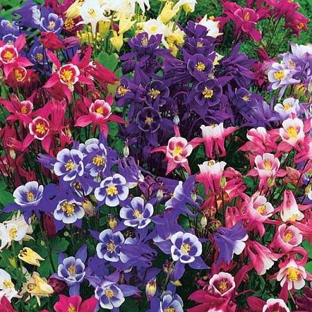 Аквилегия Бидермеер – низкорослый вид культуры, вырастает не выше 40 сантиметров и отличается поникшими цветами до 5 см в диаметре. Они очень эффектно смотрятся на фоне резных зеленовато-серых листочков. Цветение длительное, припадает на май–июнь. При помощи мощной корневой системы хорошо переносит холода, не требует пересадки и укрытия. Хорошо выглядит при выращивании в клумбах и контейнерах, выгодно выделяясь на фоне других цветущих культур.
