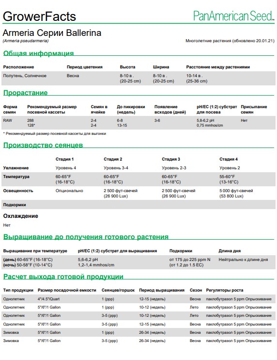 Армерия Балерина отличается как своей засухоустойчивостью, так и зимостойкостью. Хотя мы советуем укрывать растения на зиму лапником или опилками, соломой. Посадка армерии должна производиться либо под зиму, либо весной в открытый грунт, а можно посеять на рассаду в конце февраля – в марте. Место для неё следует выбирать солнечное, с хорошим дренажем. При этом допускается и легкая полутень, при которой цветение может продлиться дольше обычного. При посадке следует соблюдать расстояние между растениями: 20 см на 30 см. Несмотря на первоначально невысокую рассаду, розетки красиво разрастаются, формируя яркие летние краски для украшения сада.