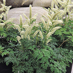 Арункус Нобл Спиритс. В отличие от общеизвестных высоких арункусон, достигающих 1-1,5 м, этот вид — низкий и компактный. Его округлый кустик имеет высоту всего 25 см. Множество белоснежных соцветий украшает растения с конца мая до июля. Даже после отцветания они сохраняют декоративность, приобретая красную окраску при созревании семян. Рекомендуется для бордюров, миксбордеров. Легко выращивается в горшках. Сеют в богатую, рыхлую, хорошо дренированную почву. В течение 1 недели содержат при 10 град, затем температуру прорастания поднимают до 20-30 град. Всходы появляются через 35 дней. Их выращивают при 15-18°. Растения зацветают через 50-54 недели.