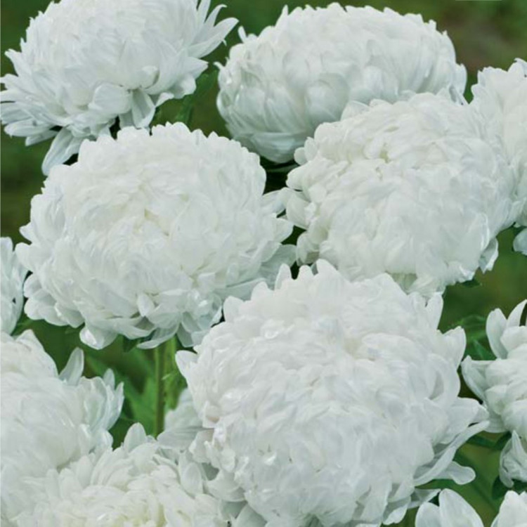 Астра пионовидная Снежная Красавица. Великолепные цветы для срезки. Растение колонновидной формы высотой 70-80 см. Соцветия снежно-белые, густомахровые, диаметром 12-14 см. Язычковые цветки широкие, ладьевидные, направлены вверх и загнуты внутрь, закрывают диск желтых трубчатых цветков. Сорт устойчив к неблагоприятным погодным условиям. Используют очень широко: для посадки в сборные цветники группами, на рабатки – рядами и на срезку.