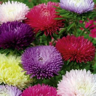 Астра Гремлин Микс. Растение высотой около 75 см устойчивое, крепкое. На растении 12-15 густомахровых соцветий. Прекрасные крупные цветы разнообразных окрасок. Цветет август-сентябрь. Используют очень широко: для посадки в сборные цветники группами, на рабатки – рядами и на срезку.