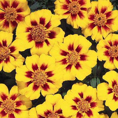 Бархатцы отклоненные Диско (Tagetes patula Disco). Низкорослые тагетесы с немахровыми цветками.