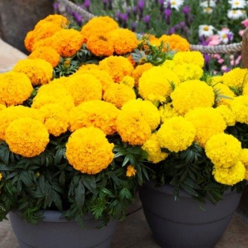 Бархатцы прямостоячие Биг Топ (Tagetes erecta Big Top) - это гибрид F1 прямостоячих бархатцев с очень крупными и устойчивыми к погодным условиям цветами.