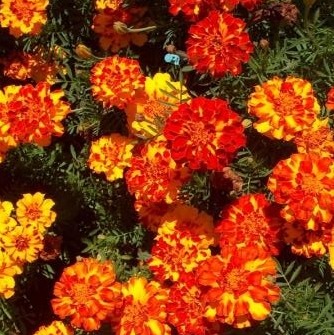 Бархатцы отклоненные махровые Болеро. Куст компактный высотой до 30 см, густооблиственный. Соцветия гвоздиковидные, коричнево-красные с золотистыми метками, диаметром до 5 см. Цветёт с июня по сентябрь. Используют для клумб, рабаток, бордюров и создания декоративных пятен.