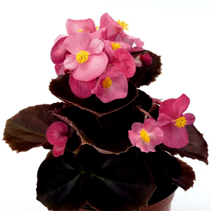Бегония вечноцветущая бронзоволистная Найтлайф (Begonia semperflorens F₁ Nightlife). Традиционный компактный сорт бронзоволистной бегонии.
