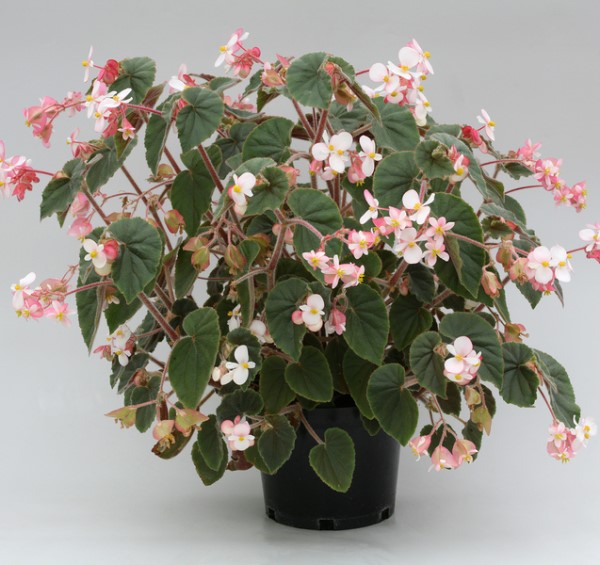 Бегония гибридная Айкон F1 (Begonia x hybrida Ikon). Уникальная бегония, объединяет в себе привлекательную листву и множество румяно-белых цветков.