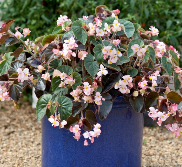 Бегония гибридная Айкон F1 (Begonia x hybrida Ikon). Уникальная бегония, объединяет в себе привлекательную листву и множество румяно-белых цветков.