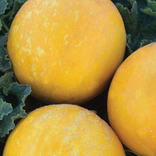 • Плод овальной формы, гладкий, желтого цвета, без рисунка, с сеткой средней плотности.