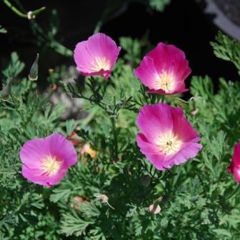 Эшшольция Лиловый луч.  Высота растения до 40 см. Стебель прямой, тонкий, с многочисленными ребристыми серо-зелеными, голыми побегами. Цветки одиночные, чашевидной формы, 5 см в диаметре. Цветет обильно с июня по октябрь. Используют для клумб, рабаток, каменистых горок.