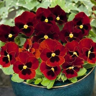 Фиалка рогатая Совершенство рубиновая. Стебли образуют плотные подушки. Крупные, округлые, рубиново-красные цветки. Одновременно на кустике насчитывается до 60 цветков. Цветёт с мая по сентябрь. Используют для бордюров, альпинариев, миксбордеров, идеально подходит для создания цветочного коврика.