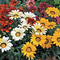 Газания Фрости Кисс (Gazania rigens Frosty Kiss). Самая раннецветущая и наиболее однородная серия с серебряными листьями, представленная на рынке.