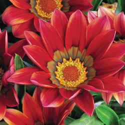 Газания Фрости Кисс (Gazania rigens Frosty Kiss). Самая раннецветущая и наиболее однородная серия с серебряными листьями, представленная на рынке.