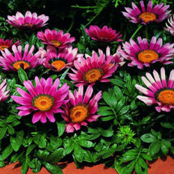 Газания Кисс. Крупные соцветия обильно покрывают кустики высотой всего 20-25 см. Это ярко цветущее растение, широко использующееся на клумбах, рабатках, для бордюров, альпийских горок, миксбордеров, балконов, контейнеров и букетов.Высота газании – 20-25 см. Листья собраны в прикорневую розетку, диаметр растения – около 20-25 см. Цветки до 8 см в диаметре открыты только в солнечную погоду. Цветет с конца июня по сентябрь.