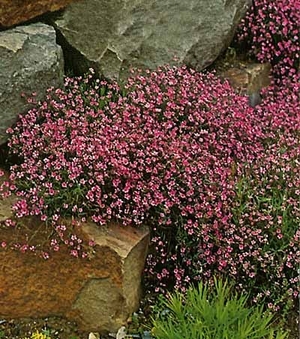 Гипсофила изящная Розовая. Высота 40-50 см. Мелкие многочисленные цветки собраны в лёгкие изящные метёлки. Цветет обильно, но непродолжительно, а потому можно делать повторные посевы через 10-12 дней. Прекрасно размножается самосевом. Традиционно используют для создания контраста в цветочных аранжировках, на клумбах, рабатках, бордюрах.