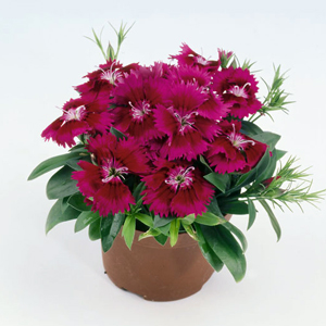Гвоздика гибридная Чиба (Dianthus interspecific Chiba).  Межвидовой гибрид гвоздики серии Чиба(Chiba) имеет суперраннее цветение и очень компактный и в то же время густой мощный куст.