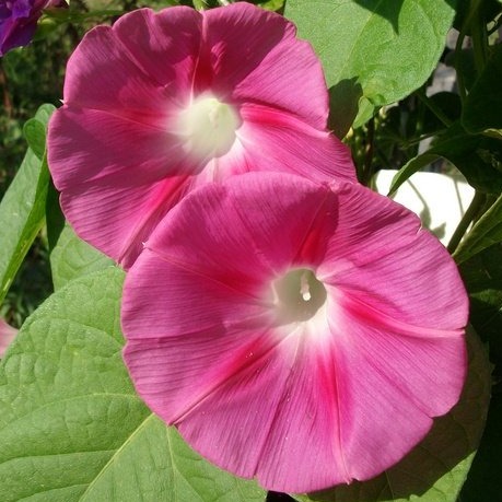 Ипомея Кримсон Рамблер. Ценится благодаря эффектным, крупным, 8-10 мм в диаметре, воронковидным цветкам — граммофончикам» красно-малинового цвета с белым звездчатым зевом. Теплолюбива, предпочитает солнечные места, хорошо растет на любой питательной почве.