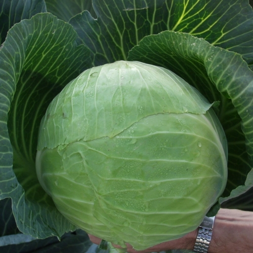 • Кочан среднего размера до крупного, округлый, покрытый, плотный, на разрезе беловатый