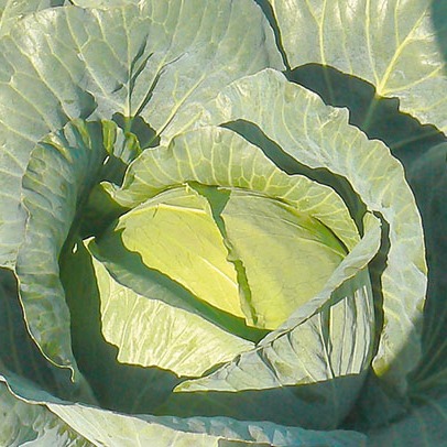 • Кочан округло-плоский, частично покрытый, на разрезе беловатый