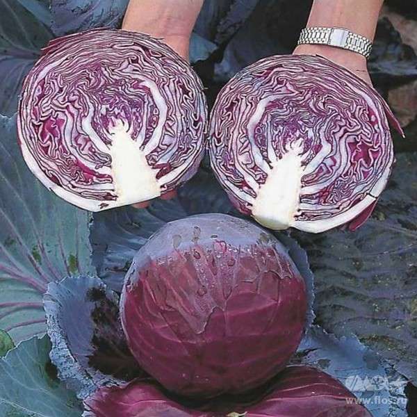 • Кочан крупный, округлый, плотный, на разрезе фиолетовый