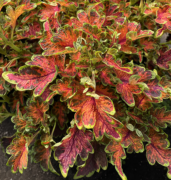 Колеус Колоча (Coleus blumei Colocha). Серия Колоча уникальна волнистыми и бахромчатыми листьями, с благородной бархатистой текстурой.