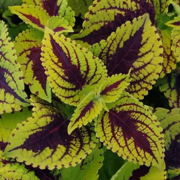 Колеус Конг Джуниор (Coleus blumei Kong Jr) — это высокие, хорошо разветвленные растения с крупными листьями уникальной пестрой окраски.