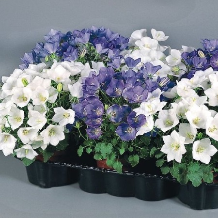 Колокольчик карпатский Смесь. Цветки голубые и белые, воронковидно - колокольчатые, одиночные. Сеют с шагом 15 - 20 см на рассаду в ящики весной, либо осенью в открытый грунт, растет на одном месте до 6 лет.