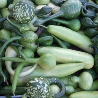 Лагенария Смесь. Декоративная лиана высотой до 3 метров. Используется для вертикального озеленения. Плода используют для изготовления различных поделок. Плоды у лагенарии бывают разнообразной формы: цилиндрические, грушевидные, шаровидные и др. Зрелые плоды не съедобны, т. к. плоды образуют прочный деревянный панцирь.