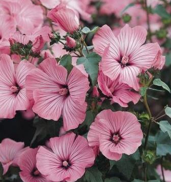 Лаватера Сильвер Кап. Мощные ветвистые растения высотой до 60 см. Цветки лососево-розовые с темными жилками. Обильное цветение с июля до конца сентября. Очень эффектны в групповых посадках, миксбордерах, цветы лаватеры хороши для срезки.