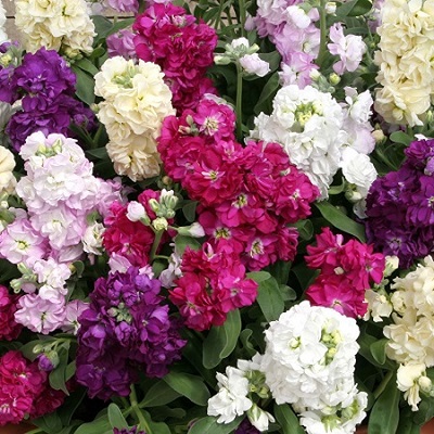 Левкой Десятинедельный гном смесь. Растение высотой 30-35 см. Крупные махровые цветки собраны в компактные соцветия. Цветёт в июне-августе. Интересный вариант для контейнерной культуры, а также великолепно выглядит на клумбах и в бордюрах.