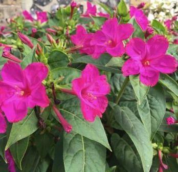 Мирабилис Пурпурный леденец. Ароматные цветки пурпурной окраски диаметром 5-6 см, раскрываются после 15 часов, а закрываются утром. Многолетнее растение, используется как однолетнее. Кустики 50-80 см высотой. Стебли прямостоячие, ветвистые. Цветёт обильно с июня до заморозков. Используют для оформления цветников, рабаток.