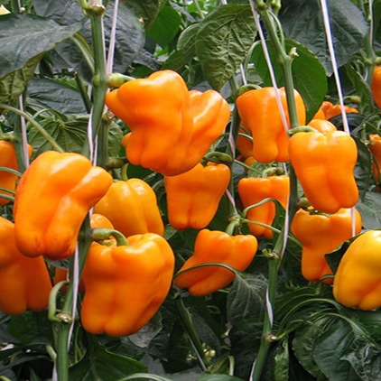Перец сладкий Оранжевое чудо. Сорт для открытого грунта и плёночных теплиц. Высота растения в открытом грунте 70-80 см. Плод кубовидной формы, трех-четырехгранный, высота и диаметр 10-11 см, толщина стенок 5-7 мм. В технической спелости окраска -зеленая. Сорт устойчив к вирусу табачной мозаики, вирусу картофеля (Y).
