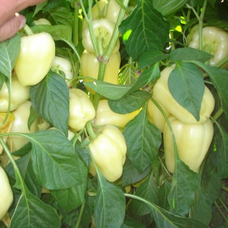 Перец Бланчина (Е20В.20009) F1 кубовидный. Гибрид раннего кубовидного перца. Мощное компактное растение с прекрасной укрывной способностьюи неломкими ветвями. Гибрид отлично переносит неблагоприятные погодные условия. Созревание плодов наступает на 65-й день от высадки рассады. Отличная лежкость и транспортабельность. Устойчив к вирусу табачной мозаики рас 0-2, вирусу бронзовости томата расы 0. Гибрид включен в Госреестр для выращивания в открытом грунте и под пленочными укрытиями в ЛПХ. Гибрид среднеспелый. Растение полураскидистое, низкое. Лист среднего размера, светло-зеленый, морщинистость очень слабая. Плод пониклый, кубовидный, сильноглянцевый, окраска в технической спелости зеленовато-белая, в биологической - красная. Число гнезд - 3. Масса плода - 180-200 г, толщина стенки - 7-8 мм. Вкус свежих плодов хороший и отличный. Урожайность товарных плодов в открытом грунте южных регионов - 4 кг./кв.м.