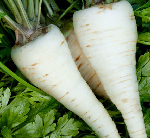 • Корнеплод средний, обратнотреугольной формы, белый.
