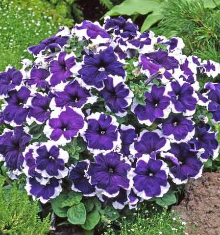 Петуния гибридная многоцветковая Калиффо F1  (Petunia hybrida multiflora Kaliffo F1) - раннецветущая, многоцветковая, крупноцветковая, гибридная петуния. Эффектный, быстрорастущий однолетник. Куст каскадной формы, с сильным ветвлением, побеги свисающие, стелющиеся 0,25-0,30 м высота, диаметр 1,0 м .
