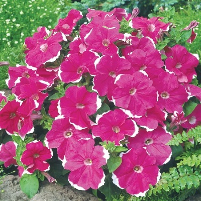 Петуния мультифлора Кэнди (Petunia multiflora Candy F1). Серия компактной, хорошо разветвленной петунии, все расцветки имеют белую кайму.