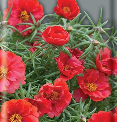 Портулак крупноцветковый Солнечная страна красный. Многолетнее растение, используемое как однолетнее. Образует кустик высотой 10 см. Красные, похожие на розочки, экстра махровые цветы, диаметром 3-4 см. Цветет с июня до заморозков.