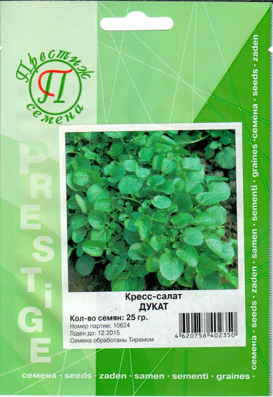 Кресс-салат Дукат. Раннеспелый сорт, отличающийся большим содержанием йода, железа, витаминов и калия. Рекомендуется для быстрого получения зелени в зимний и ранневесенний период.