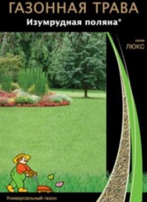 Газонная трава Изумрудная поляна (универсальный газон). Смесь составлена из лучших сортов трав, максимально приспособленных к природно-климатическим условиям России. Пригодна для всех типов почв, устойчива к вытаптыванию и небольшому затенению, для восстановления травяного покрова, приусадебных и дачных участков.