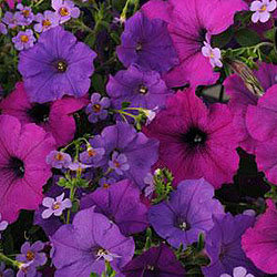 • Бакопа + Петуния серии Фузейблс очень хорошо будут смотреться в подвешенных на стену корзинках у вас дома, на баконах, в пейзажных группах и каменистых горках.
