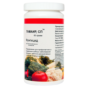 Биологический бактерицид на основе природной бактерии Bacillus subtilis М – 22 ВИЗР, предотвращающий пятнистости на листьях, бактериальные гнили, паршу, монилиоз, бактериальный рак, сосудистый и слизистый бактериозы.