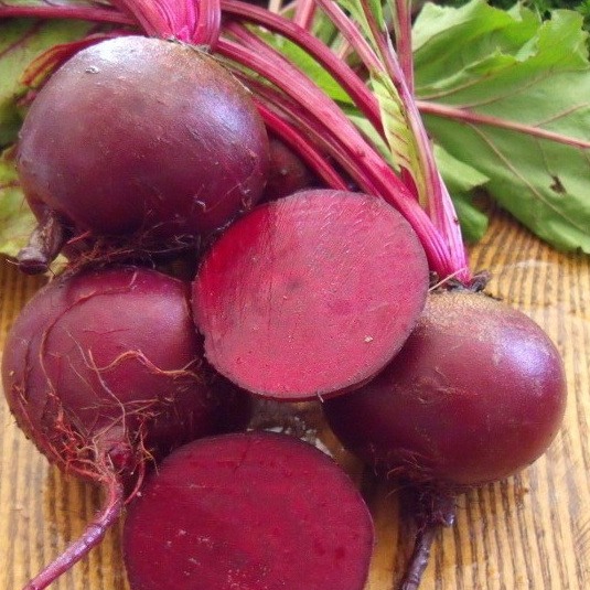 • Корнеплод округлый, гладкий, красный с тонким и очень коротким осевым корешком, мякоть темно-красная, без кольцеватости.