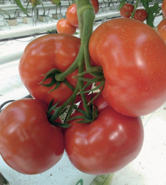 Томат Ордынка F1. Среднего позднего срока созревания (118 – 122 дня от всходов до начала созревания плодов) высокопродуктивный индетерминантный гибрид. Пригоден для возделывания как способом малообъемной технологии, так и для выращивания на грунтах. Рекомендуется для возделывания как в первом, так и во втором оборотах. Растения cильнорослые, среднеоблиственные. Лист серовато зеленый, крупный, в средней части растения горизонтально расположенный или слегка пониклый. Первое соцветие закладывается над 10 – 12 листом, последующие через 3 листа. Соцветие простое, компактное с 4 – 6-ю плодами плоско округлой формы (индекс плода 0,8 – 0,9). Плоды в незрелом состоянии интенсивно зеленой окраски, без темно зеленого пятна у основания, при созревании ярко красного цвета, хороших вкусовых качеств, многокамерные. Плоды достаточно прочные, лежкие и транспортабельные. Средняя масса плода 220 – 280 г. Гибрид устойчив к вирусу мозаики томата, кладоспориозу, фузариозному увяданию, вертициллезному увяданию и нематоде.