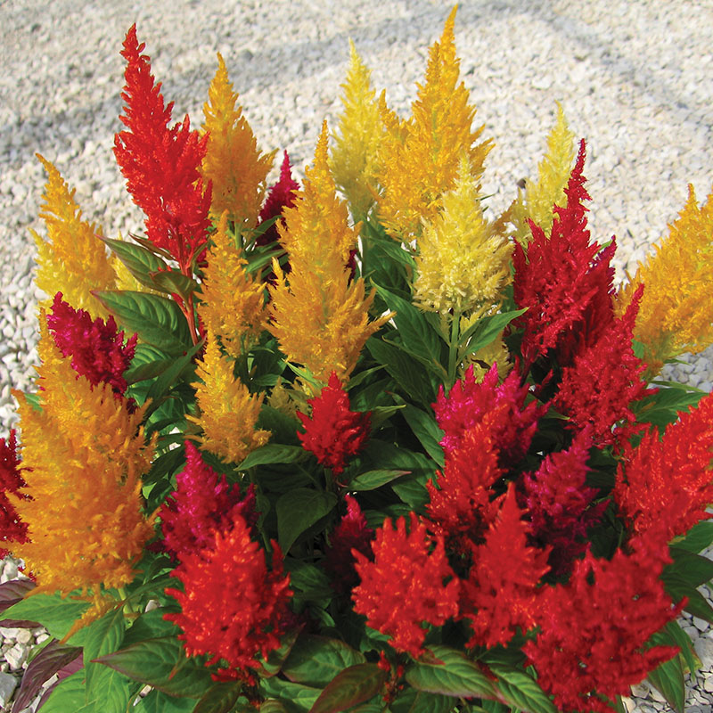 Целозия перистая Сэнчири ( Celosia argentea plumosa Century) - очень ранний, устойчивый к жаре сорт с обилием эффектных цветов с большими перьями на прочных стеблях.