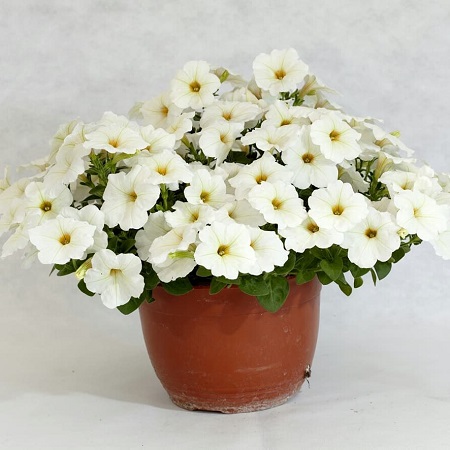 Петуния гибридная Пендолино(Pendolino) – самый раннецветущий и совершенно новый гибрид на цветочном рынке. Габитус растения и диаметр цветка напоминает калибрахоа: тонкие длинные ниспадающие побеги, усыпанные мелкими цветами и достигающие в длину около 1 метра, стремятся вверх и в стороны. Благодаря чему середина куста никогда не бывает пустой, что часто случается с ампельными петуниями. Серию Пендолино можно использовать как для кашпо и подвесных корзин, так и для ландшафтного дизайна, а также для клумб и рабаток. Новый гибрид относится к группе минимультифлора: цветки небольшие, но многочисленные, диаметром около 2-3 см; растения непрерывно и чрезвычайно обильно цветут с весны до поздней осени благодаря гену мужской стерильности; быстро восстанавливаются после дождей и переувлажнения. Недостаток рода калибрахоа – низкая устойчивость к повышенным температурам; серия Пендолино была выведена для устранения этого недостатка, и характеризуется высокой устойчивостью как к повышенным, так и пониженным температурам.
