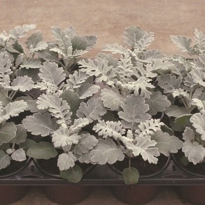 Цинерария приморская Сильверадо (Cineraria maritima Silverado). Однолетнее, кустистое растение с очень декоративными рассеченными листьями серебристого цвета.