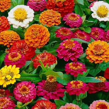 Цинния Тамбелина. Чрезвычайно декоративное однолетнее растение. Формирует небольшие, ветвистые у снования кустики, высотой 15-30 см, пленяющие пышным и ярким цветением. Соцветия - корзинки диаметром 4-6 см, очень плотные, махровые. В окраске присуствуют пурпурно-розовые, ярко-жёлтые, красные, сиреневые, оранжевые, фиолетовые тона. Цветение обильно и продолжительно с середины июня до заморозков. Благодаря богатству красок и форме гармонично впишется в клумбы, рабатки, бордюры.