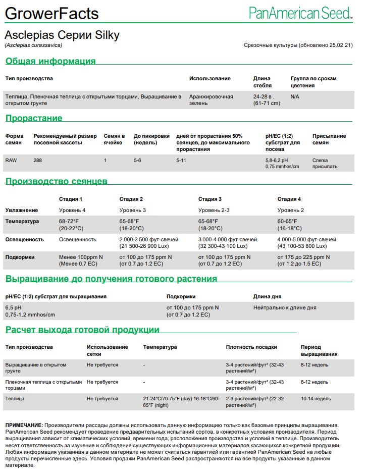 Ваточник (Asclepias curassavica Silky). Серия выведена для оранжерейного и уличного выращивания (в летний период).  Предпочитает теплое, достаточно сухое место.