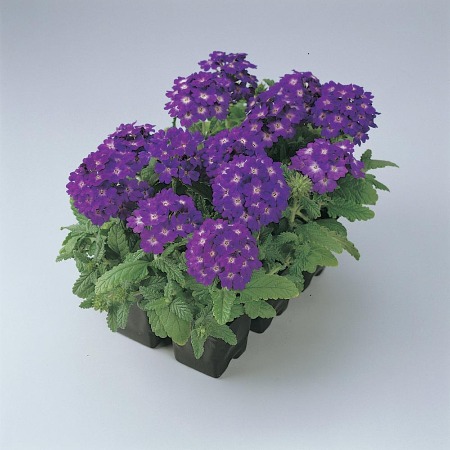 Вербена гибридная Синяя с глазком. Высота растения 50 см. Цветки синего цвета с глазком в центре. Цветёт с июня по октябрь. Используют для клумб, рабаток, на срезку.