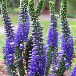 Вероника колосковая Блю Букет (Verónica spicáta Blue Bouquet) – многолетнее травянистое растение до 40 см в высоту. Вероника – прекрасное почвопокровное растение, которое в групповых посадках не пропускает сорняков. Высаживают растение с другими многолетниками, в композициях с хвойниками и красивоцветущими сортами. Тёмно – синий цвет соцветий выгодно выделяется на фоне ярко – зелёной листвы. Отличается продолжительным цветением – до 40 дней.